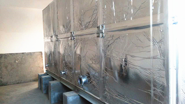 此水箱外圍為鋁箔布橡塑保溫,客戶(hù)在找到我們時(shí)根本不了解水箱保溫情況,只告訴我們水箱是在學(xué)校用,供學(xué)校學(xué)生用水。水溫要保存好才行。經(jīng)過(guò)我們的了解,我公司向客戶(hù)提供使用玻璃鋼材質(zhì),外加橡塑保溫。水箱材質(zhì)用水既安全、衛(wèi)生又耐用,用個(gè)十多年沒(méi)問(wèn)題,而且橡塑保溫價(jià)格便宜,水溫在24小時(shí)之內(nèi)能保持10-30度左右是沒(méi)有問(wèn)題的